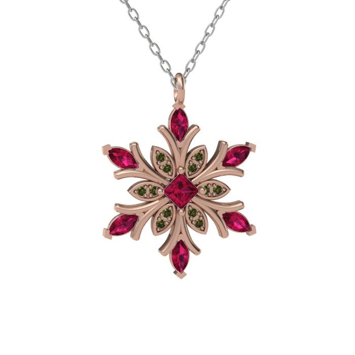 Rodolit garnet ve peridot 18 ayar rose altın kolye (40 cm beyaz altın rolo zincir)