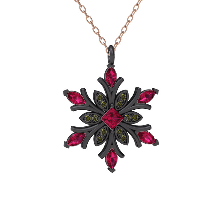 Rodolit garnet ve peridot 925 ayar siyah rodyum kaplama gümüş kolye (40 cm gümüş rolo zincir)
