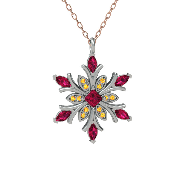 Rodolit garnet ve sitrin 925 ayar gümüş kolye (40 cm rose altın rolo zincir)