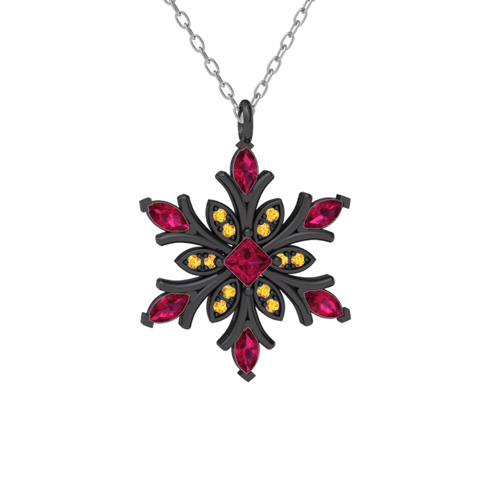 Rodolit garnet ve sitrin 925 ayar siyah rodyum kaplama gümüş kolye (40 cm gümüş rolo zincir)