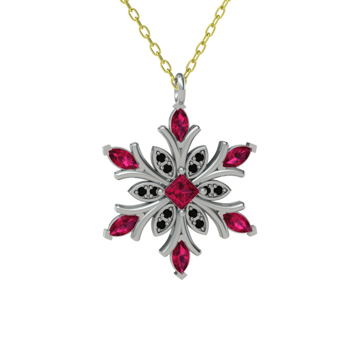 Rodolit garnet ve siyah zirkon 925 ayar gümüş kolye (40 cm altın rolo zincir)