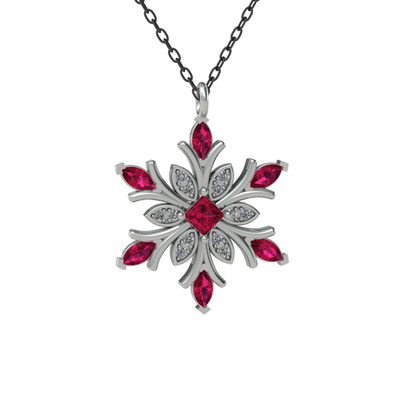 Rodolit garnet ve swarovski 14 ayar beyaz altın kolye (40 cm gümüş rolo zincir)