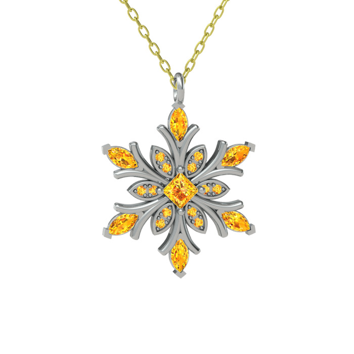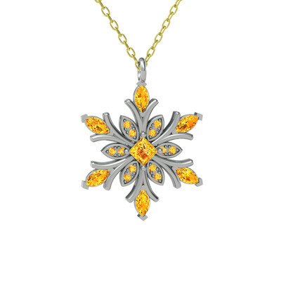Sitrin 18 ayar beyaz altın kolye (40 cm gümüş rolo zincir)