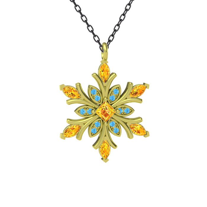 Sitrin ve akuamarin 14 ayar altın kolye (40 cm gümüş rolo zincir)