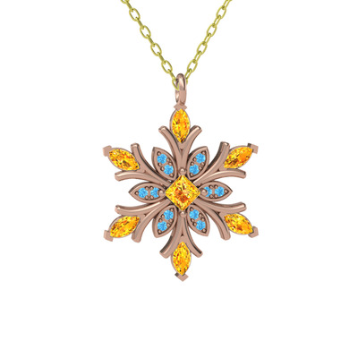Sitrin ve akuamarin 14 ayar rose altın kolye (40 cm altın rolo zincir)