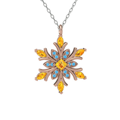 Sitrin ve akuamarin 14 ayar rose altın kolye (40 cm beyaz altın rolo zincir)