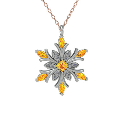 Sitrin ve beyaz zirkon 925 ayar gümüş kolye (40 cm rose altın rolo zincir)