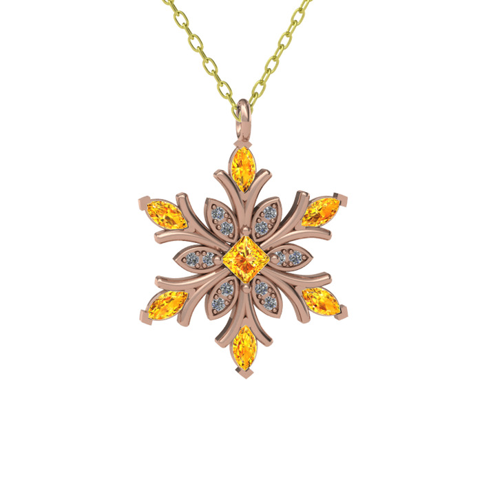 Sitrin ve pırlanta 18 ayar rose altın kolye (0.1056 karat, 40 cm altın rolo zincir)