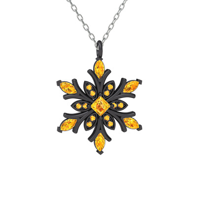 Sitrin 925 ayar siyah rodyum kaplama gümüş kolye (40 cm beyaz altın rolo zincir)