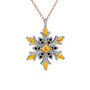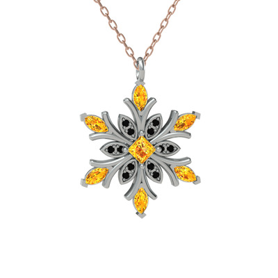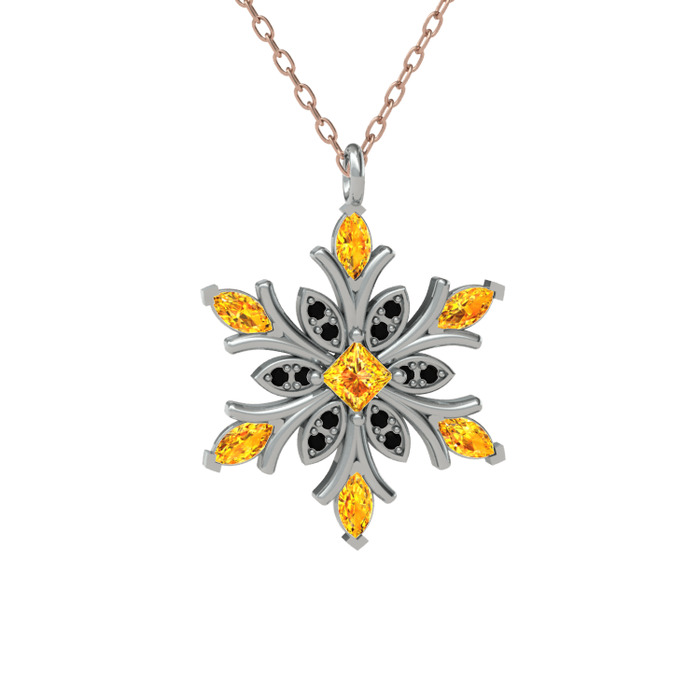 Sitrin ve siyah zirkon 8 ayar beyaz altın kolye (40 cm rose altın rolo zincir)