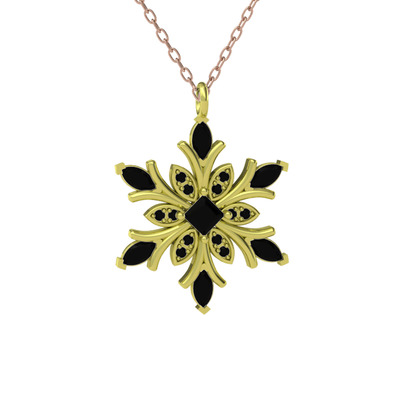 Siyah zirkon 14 ayar altın kolye (40 cm rose altın rolo zincir)