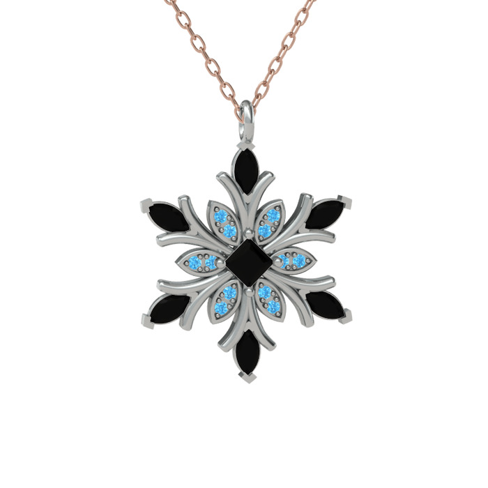 Siyah zirkon ve akuamarin 18 ayar beyaz altın kolye (40 cm gümüş rolo zincir)
