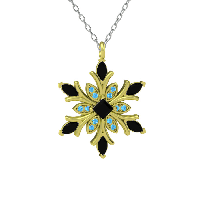 Siyah zirkon ve akuamarin 8 ayar altın kolye (40 cm beyaz altın rolo zincir)