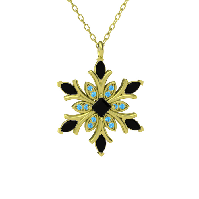 Siyah zirkon ve akuamarin 925 ayar altın kaplama gümüş kolye (40 cm altın rolo zincir)
