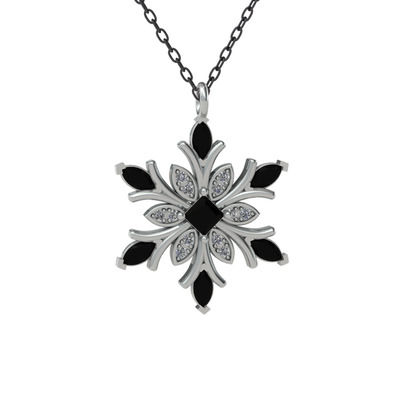 Siyah zirkon ve beyaz zirkon 18 ayar beyaz altın kolye (40 cm gümüş rolo zincir)