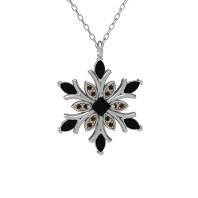 Siyah zirkon ve dumanlı kuvars 14 ayar beyaz altın kolye (40 cm beyaz altın rolo zincir)