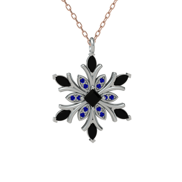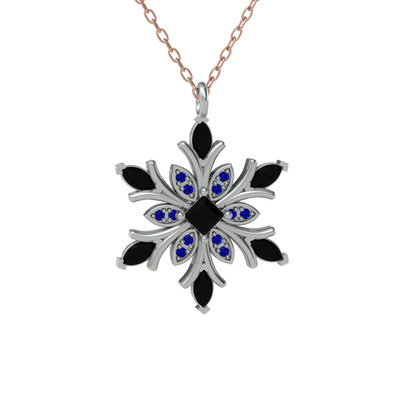 Siyah zirkon ve lab safir 925 ayar gümüş kolye (40 cm rose altın rolo zincir)