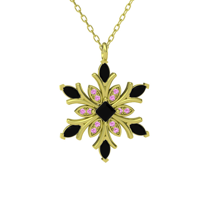 Siyah zirkon ve pembe kuvars 14 ayar altın kolye (40 cm altın rolo zincir)