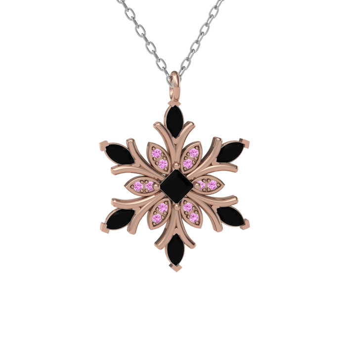 Siyah zirkon ve pembe kuvars 18 ayar rose altın kolye (40 cm beyaz altın rolo zincir)