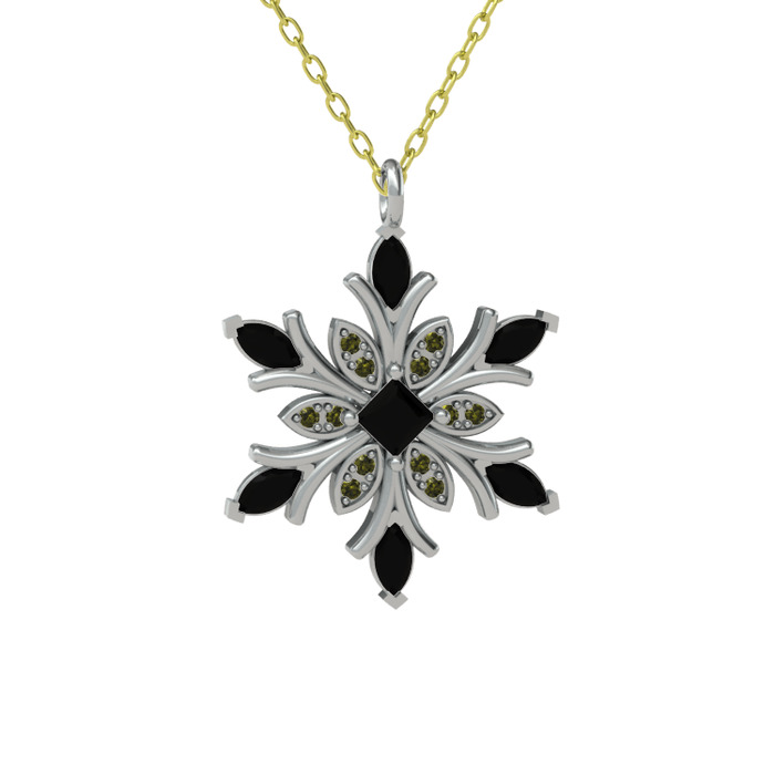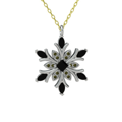 Siyah zirkon ve peridot 14 ayar beyaz altın kolye (40 cm altın rolo zincir)