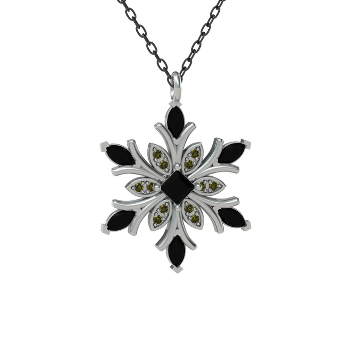 Siyah zirkon ve peridot 14 ayar beyaz altın kolye (40 cm gümüş rolo zincir)
