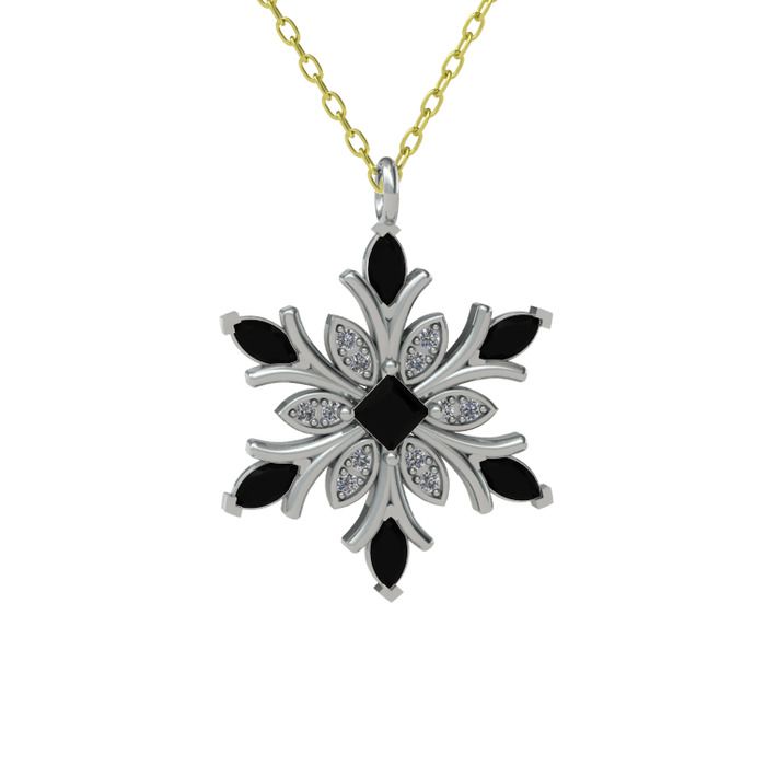 Siyah zirkon ve pırlanta 18 ayar beyaz altın kolye (0.1056 karat, 40 cm altın rolo zincir)