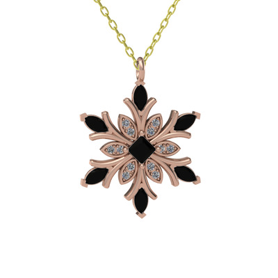 Siyah zirkon ve pırlanta 925 ayar rose altın kaplama gümüş kolye (0.1056 karat, 40 cm altın rolo zincir)