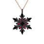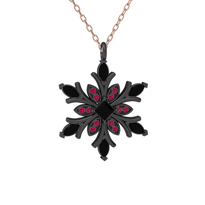 Siyah zirkon ve rodolit garnet 925 ayar siyah rodyum kaplama gümüş kolye (40 cm rose altın rolo zincir)