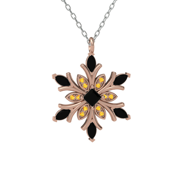 Siyah zirkon ve sitrin 18 ayar rose altın kolye (40 cm beyaz altın rolo zincir)