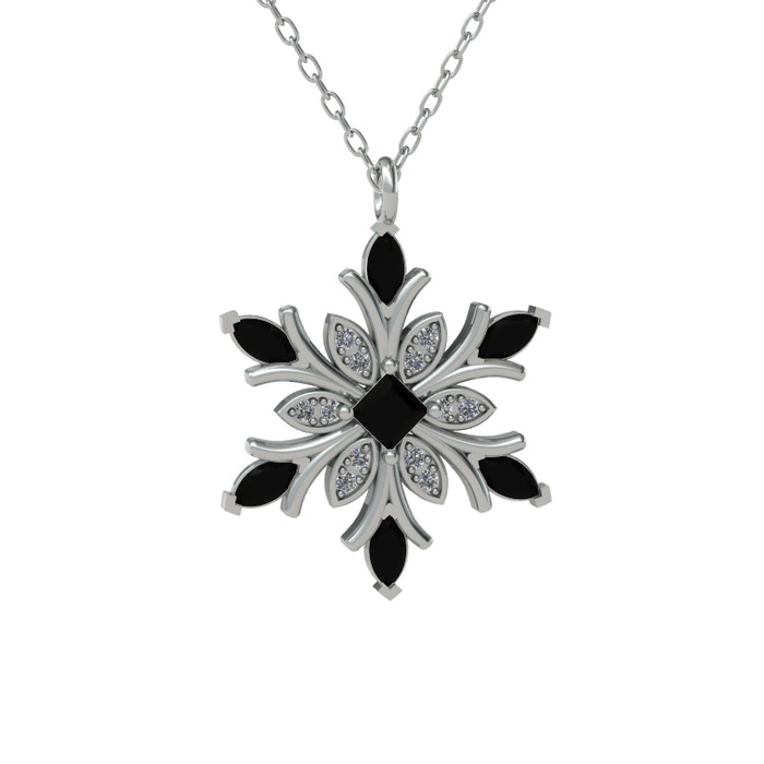Siyah zirkon ve swarovski 925 ayar gümüş kolye (40 cm beyaz altın rolo zincir)