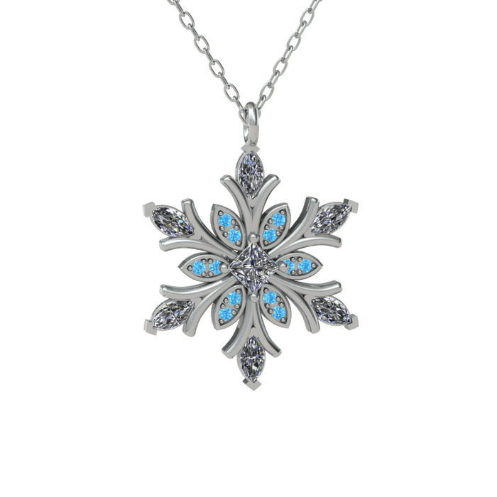 Swarovski ve akuamarin 14 ayar beyaz altın kolye (40 cm gümüş rolo zincir)