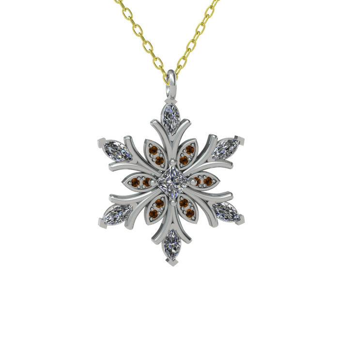 Swarovski ve dumanlı kuvars 14 ayar beyaz altın kolye (40 cm gümüş rolo zincir)