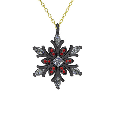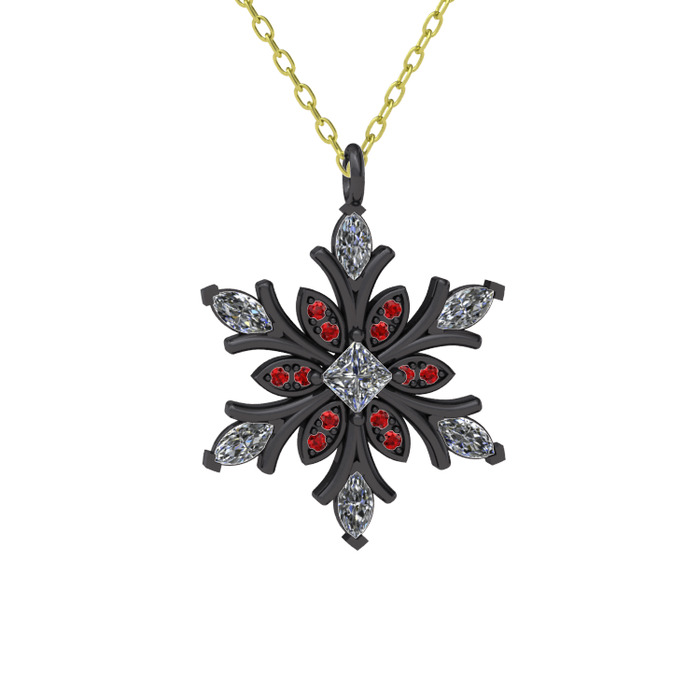 Swarovski ve garnet 925 ayar siyah rodyum kaplama gümüş kolye (40 cm altın rolo zincir)