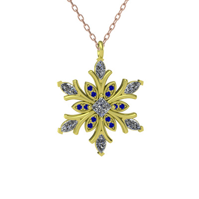 Swarovski ve lab safir 18 ayar altın kolye (40 cm gümüş rolo zincir)