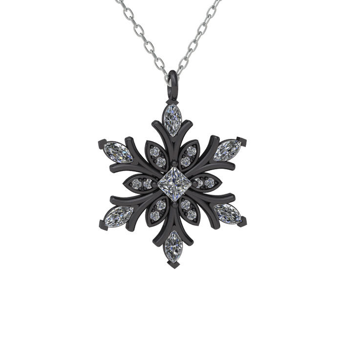 Swarovski ve pırlanta 925 ayar siyah rodyum kaplama gümüş kolye (0.1056 karat, 40 cm beyaz altın rolo zincir)