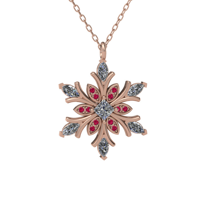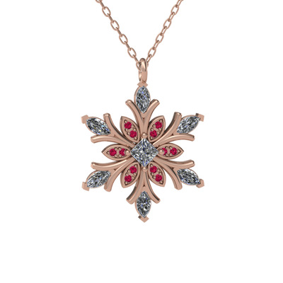 Swarovski ve rodolit garnet 18 ayar rose altın kolye (40 cm gümüş rolo zincir)