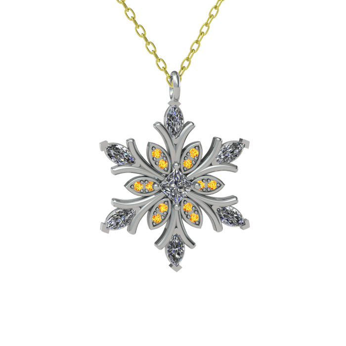 Swarovski ve sitrin 18 ayar beyaz altın kolye (40 cm altın rolo zincir)
