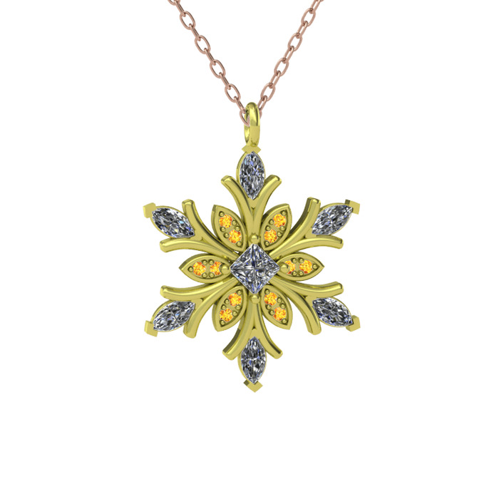 Swarovski ve sitrin 925 ayar altın kaplama gümüş kolye (40 cm gümüş rolo zincir)