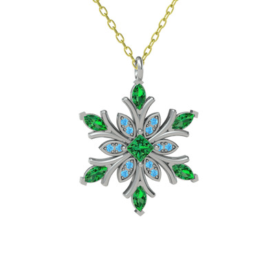 Yeşil kuvars ve akuamarin 18 ayar beyaz altın kolye (40 cm altın rolo zincir)