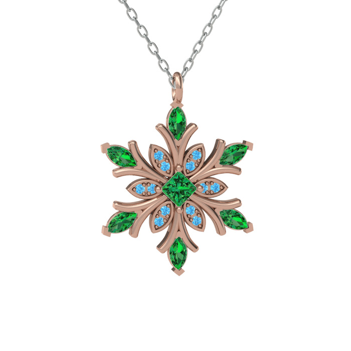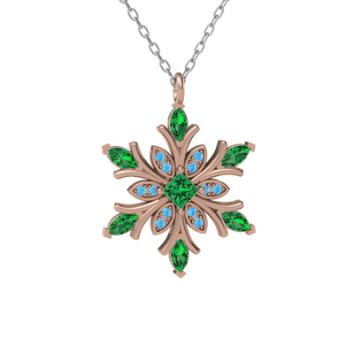 Yeşil kuvars ve akuamarin 8 ayar rose altın kolye (40 cm beyaz altın rolo zincir)