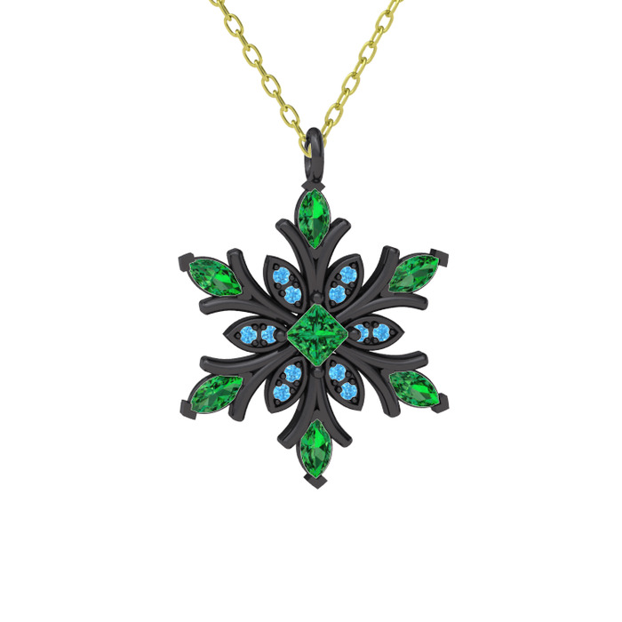 Yeşil kuvars ve akuamarin 925 ayar siyah rodyum kaplama gümüş kolye (40 cm gümüş rolo zincir)