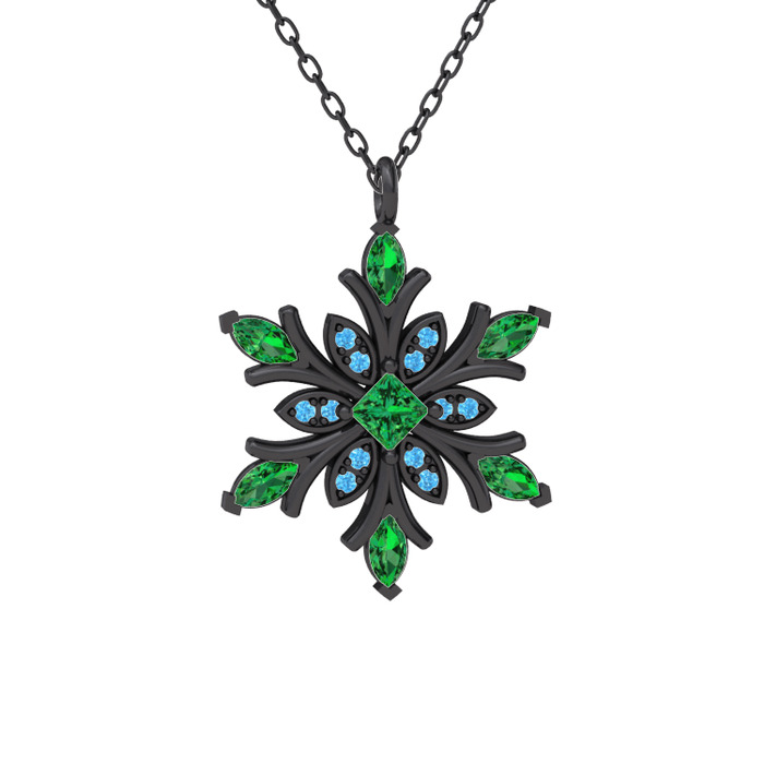 Yeşil kuvars ve akuamarin 925 ayar siyah rodyum kaplama gümüş kolye (40 cm gümüş rolo zincir)