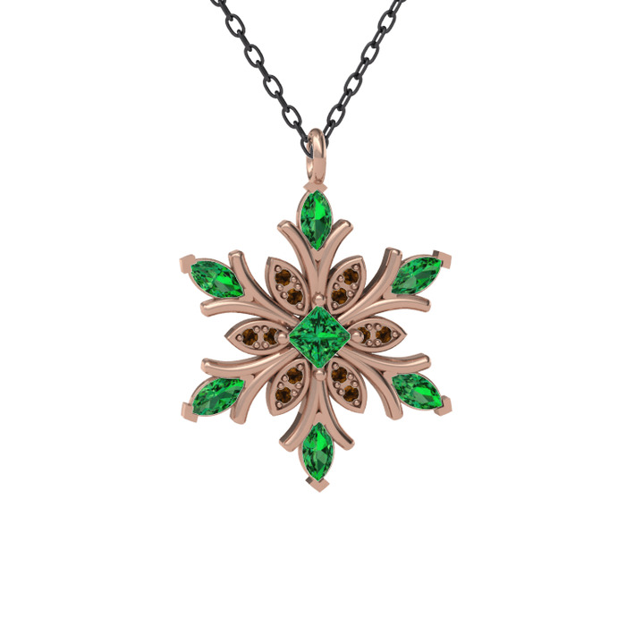 Yeşil kuvars ve dumanlı kuvars 925 ayar rose altın kaplama gümüş kolye (40 cm gümüş rolo zincir)
