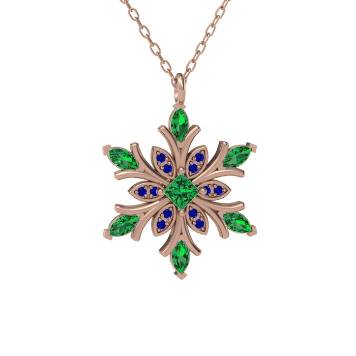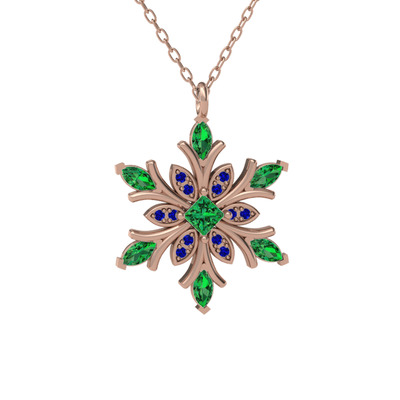 Yeşil kuvars ve lab safir 8 ayar rose altın kolye (40 cm rose altın rolo zincir)