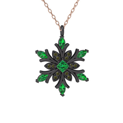 Yeşil kuvars ve peridot 925 ayar siyah rodyum kaplama gümüş kolye (40 cm rose altın rolo zincir)