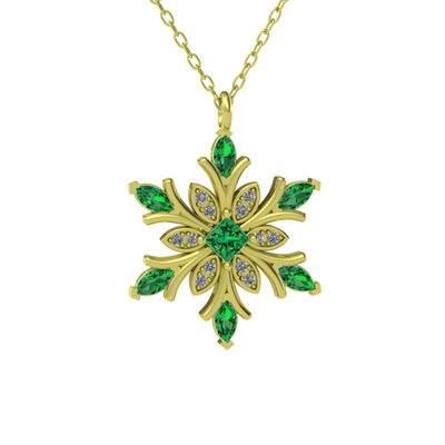Yeşil kuvars ve pırlanta 925 ayar altın kaplama gümüş kolye (0.1056 karat, 40 cm altın rolo zincir)