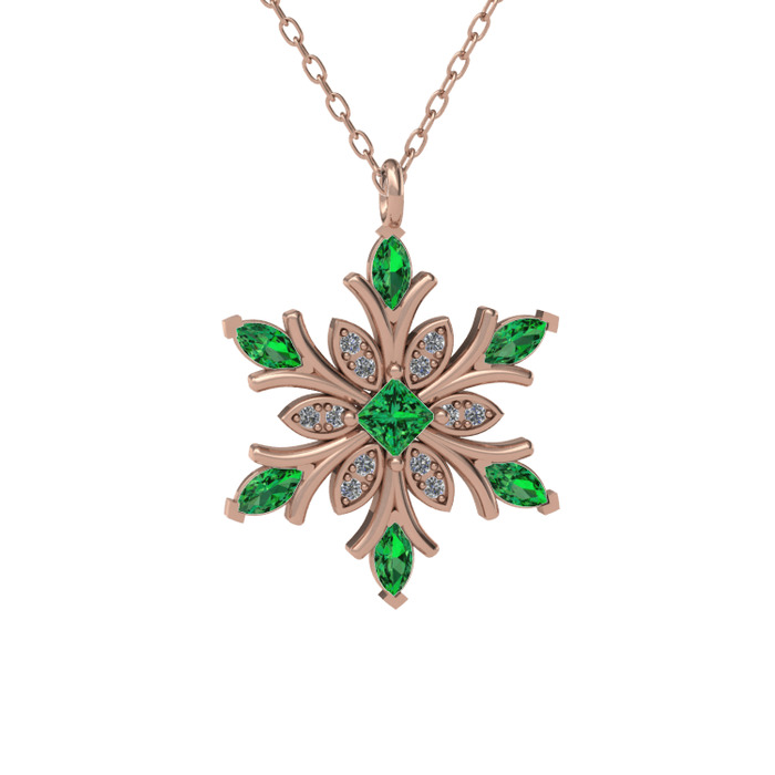Yeşil kuvars ve pırlanta 925 ayar rose altın kaplama gümüş kolye (0.1056 karat, 40 cm gümüş rolo zincir)