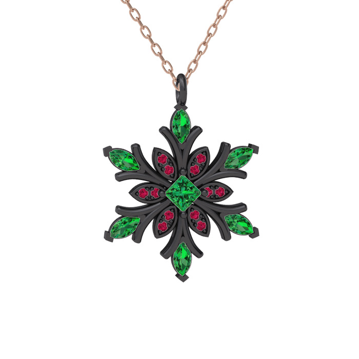 Yeşil kuvars ve rodolit garnet 925 ayar siyah rodyum kaplama gümüş kolye (40 cm rose altın rolo zincir)