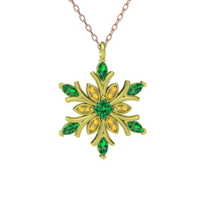 Yeşil kuvars ve sitrin 14 ayar altın kolye (40 cm rose altın rolo zincir)