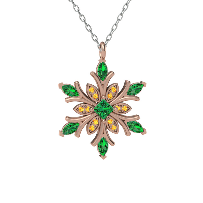 Yeşil kuvars ve sitrin 8 ayar rose altın kolye (40 cm beyaz altın rolo zincir)